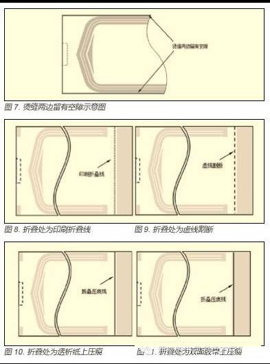 要想避免這種情況帶來的剝離有紙屑,在設(shè)計時就應(yīng)考慮,橫向制袋燙合的模具比實際袋寬稍窄,袋子封燙后,*張袋與第二張袋燙合模具之間應(yīng)留有空隙,切刀切斷時要求在空隙之間,保證每張袋子的燙縫邊緣外有空隙;以及縱向制袋燙合切余料邊緣時,兩燙縫邊緣外也有空隙(如圖7)。